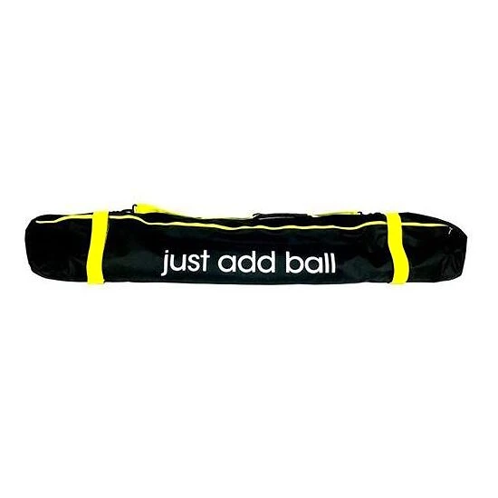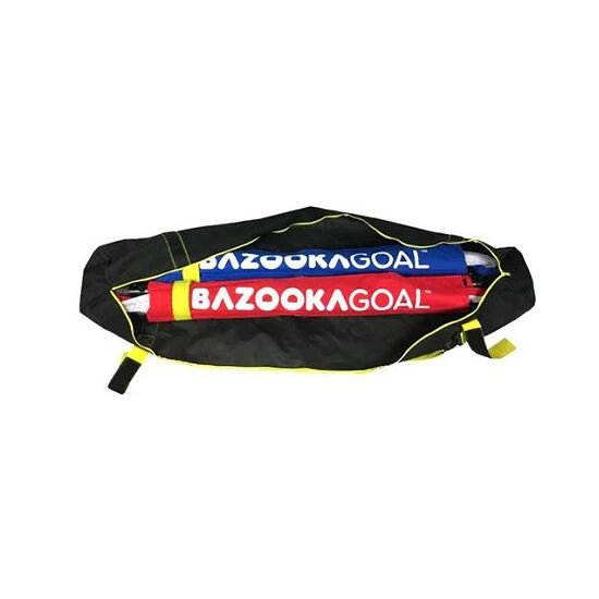 Die Transporttasche „Carry Bag“ von BazookaGoal besteht aus schwarzem Stoff (100 % PolyesterPolyester ist eine sehr pflegeleichte Kunstfaser. Schnell trocknend und besonders reißfest.). Mit gelbem Reißverschluss und Klettverschluss.