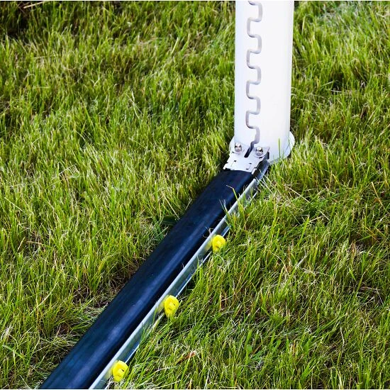 Der Bodenrahmen mit PlayersProtect für Tore 7,32×2,44 m ist mit einem Gummiprofil versehen, welches UV- und witterungsbeständig ist. Diese Gummierung soll den Spieler beim Aufprall auf den Bodenrahmen schützen. Besondere Konstruktion: Die inneren Kammern und die Form sorgen für einen erheblichen Kraftabbau.