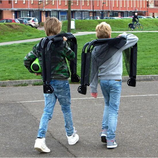 Das Exit Fußballtor „Pico“ ist ein faltbares Mini-Fußballtor, das keine Wünsche offen lässt: Der stabile Metallrahmen ist zum Schutz gegen Wind und Wetter galvanisiertBeim Galvanisieren wird ein Gegenstand mittels elektrochemischer Prozesse mit einem Metall beschichtet. Dabei entsteht eine rundum gleichmäßige Anlagerung der Metallschicht. Mit diesem Verfahren werden z.B. Teile verchromt, Schmuckstücke vergoldet oder Schrauben verzinkt. Dient der Veredelung und dem Korrosionsschutz. und pulverbeschichtet