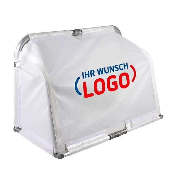 Die Größe der Druckfläche beträgt beim kleineren Netz (LxB) 70×55 cm. Wählen Sie die größere Netzvariante steht Ihnen eine Druckfläche von (LxB) 100×70 cm für Ihren individuellen Logo-Wunsch zur Verfügung.