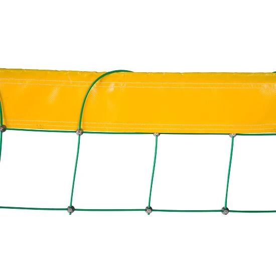 Das Huck Beachvolleyballnetz ist aus verzinkten Stahldrahtseilen (Dralo) gefertigt und ca. 2 mm stark. Das obere Einfassband besteht aus beschichtetem Gewebe. Die Netzgröße nach internationaler Vorschrift gefertigt. Sollten Spieler hin und wieder in das Netz greifen, sind ummantelte Netze wesentlich weicher und angenehmer.