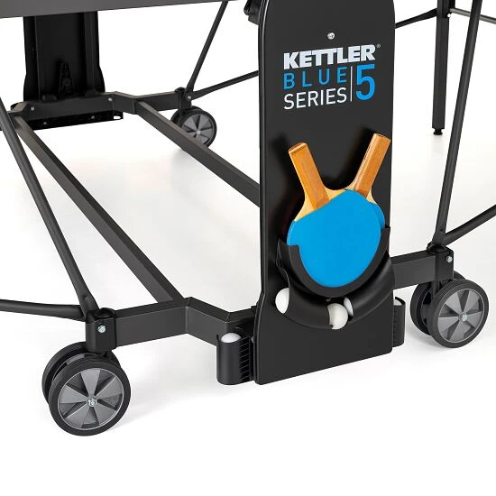 Die Kettler Tischtennisplatte „K5 Indoor“ verfügt über 4 bodenschonende Doppellenkrollen mit Gummibeschichtung. Die Platte ist 6-fach direktlackiert und mit 19 mm Stärke besonders robust. Ebenfalls besonders stabil kommt der pulverbeschichtete
