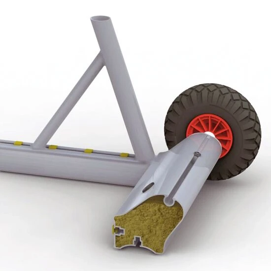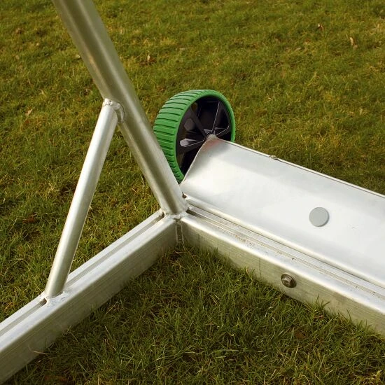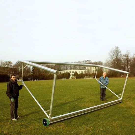 Mit diesen hochwertigen Zusatzgewichten aus deutscher Produktion sichern Sie Ihre Jugendfußballtore schnell, einfach und zuverlässig gegen Umkippen. Eine Torsicherung besteht aus einem AluminiumAluminium ist ein korrosionsbeständiges und pflegeleichtes Leichtmetall, welches für den vielfältigen Einsatz im Innen- und Außenbereich geeignet ist. Aufgrund der hohen Elastizität und des nur geringen Gewichts, ist es eines der am häufigsten verwendeten Gebrauchsmaterialien.-Spezialprofil sowie stabilen Transporträdern. Das Gewichtsprofil wird fest mit dem Bodenrahmen des Tores verschraubt und anschließend zur Erreichung des erforderlichen Kontergewichts mit trockenem Quarzsand gefüllt. Das so gesicherte Tor entspricht den Vorschriften zur Sicherung von mobilen Toren des GUV und der DINDIN-Norm: Ein vom Deutschen Institut für Normung erarbeiteter freiwilliger Standard, in dem materielle und immaterielle Gegenstände vereinheitlicht sind. EN 748 und lässt Sie auf der sicheren Seite stehen! Durch Zurückkippen des Tores mit 2 Personen verlagern Sie das Gewicht auf die Räder und positionieren es problemlos neu auf dem Trainingsplatz.