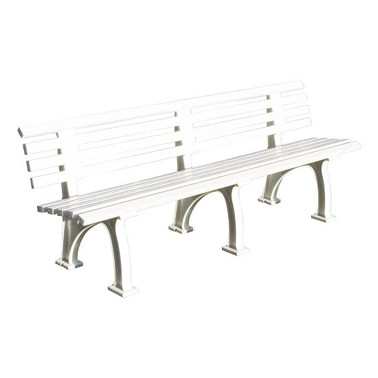 Die Tennis-Sitzbank „Berlin“ ist aus wetterfestem Kunststoff gefertigt und
