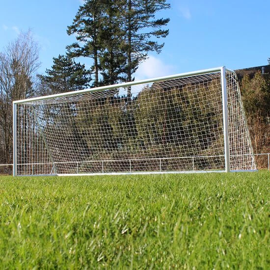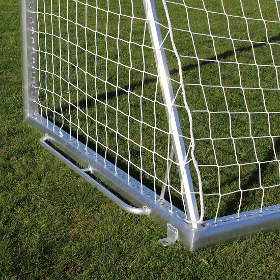 Das Sport-Thieme Großfeld-Fußballtor mit den nach FIFA-DFB-Vorschriften gebauten Maßen bietet eine lange Haltbarkeit. Das aus 80 % recycelte AluminiumAluminium ist ein korrosionsbeständiges und pflegeleichtes Leichtmetall, welches für den vielfältigen Einsatz im Innen- und Außenbereich geeignet ist. Aufgrund der hohen Elastizität und des nur geringen Gewichts, ist es eines der am häufigsten verwendeten Gebrauchsmaterialien.-Tor ist von innen mehrfach verstärkt, vollverschweißt und verletzungsneutral, da es mit einer Antikipp-Bodenverankerung für Weichplätze ausgestattet ist. Kombinierbar mit biologisch abbaubaren Tornetzen, die sich an der umlaufend eingefrästen Simply-Fix-Befestigung befestigen lassen. Das sorgt für hohe Stabilität auch bei zahlreichen Torschüssen. Das mobile Trainingstor lässt sich durch angeschweißte Transportgriffe obendrein leicht befördern und verstellen. Ideal, wenn das Feld im Schul- und Vereinstraining einer Verkleinerung oder Vergrößerung bedarf.