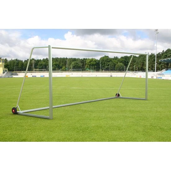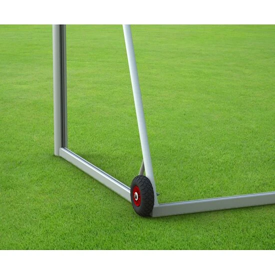 Das transportable Großfeld-Fußballtor „Eco“ überzeugt durch Stabilität und Mobilität. Es ist in einer besonders stabilen Leichtbauweise gefertigt und enorm Langlebig. Das Latte-Pfosten-Profil und der Bodenrahmen sind aus hochwertigem AluminiumAluminium ist ein korrosionsbeständiges und pflegeleichtes Leichtmetall, welches für den vielfältigen Einsatz im Innen- und Außenbereich geeignet ist. Aufgrund der hohen Elastizität und des nur geringen Gewichts, ist es eines der am häufigsten verwendeten Gebrauchsmaterialien. gefertigt und zu einer stabilen Gesamtkonstruktion verschweißt. Eine zusätzliche Stahlverstärkung in den Ecken sorgt für extra Stabilität.