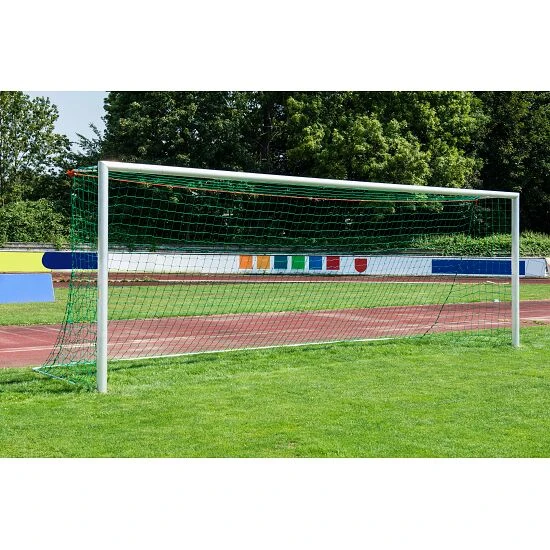 Das Sport-Thieme Großfeld-Fußballtor ist 7,32×2,44 m groß und entspricht den aktuellen FIFA- und DFB-Vorschriften. Es ist aus hochwertigem AluminiumAluminium ist ein korrosionsbeständiges und pflegeleichtes Leichtmetall, welches für den vielfältigen Einsatz im Innen- und Außenbereich geeignet ist. Aufgrund der hohen Elastizität und des nur geringen Gewichts, ist es eines der am häufigsten verwendeten Gebrauchsmaterialien.-Ovalprofil gefertigt. Die Torecken sind verschweißt und auf der Latte befindet sich eine Verbindung die zusammen geschraubt werden muss. Seitenteile werden mit Latte verschraubt. Das Netz (nicht im Lieferumfang) lässt sich dank der gefrästen SimplyFix-Netzbefestigung einfach am Sport-Thieme Großfeld-Fußballtor anbringen. Hierfür wird die Netzrandschnur vollständig in der Profilnut versenkt. Die Lieferung erfolgt inklusive Bodenhülsen.