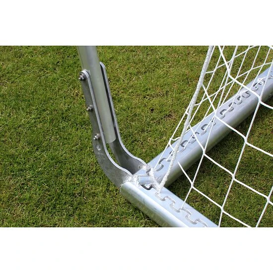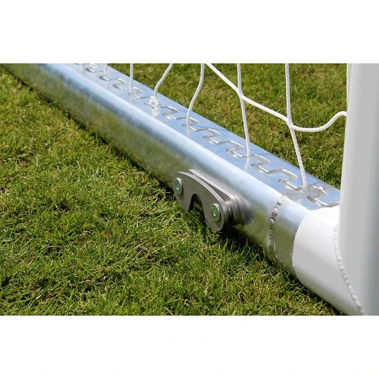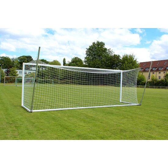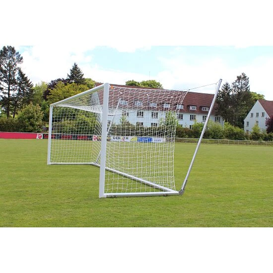 . Dank der vielfachen Innenprofilierung besonders verwindungssteif. Dadurch wird eine optimale Stabilität und Haltbarkeit erreicht. Verletzungsneutral. Eckverschweißt. Dank der gefrästen SimplyFix-Netzbefestigung lässt sich das Netz (nicht im Lieferumfang) einfach am Sport-Thieme Stadion-Großfeldtor anbringen. Hierfür wird die Netzrandschnur vollständig in der Profilnut versenkt.Das Sport-Thieme Großfeld-Fußballtor eignet sich hervorragend als Spieltor, aber auch als Trainingstor zum mobilen Einsatz. Hier besonders für den Einsatz auf Kunstrasenplätzen, da keine Bodenhülsen zum Einsatz kommen können. Durch zusätzliche Gewichte im Bodenrahmen (nicht im Lieferumfang) kann dieses Tor auch kippsicher, z.B. auf Kunstrasenplätzen verwendet werden.
