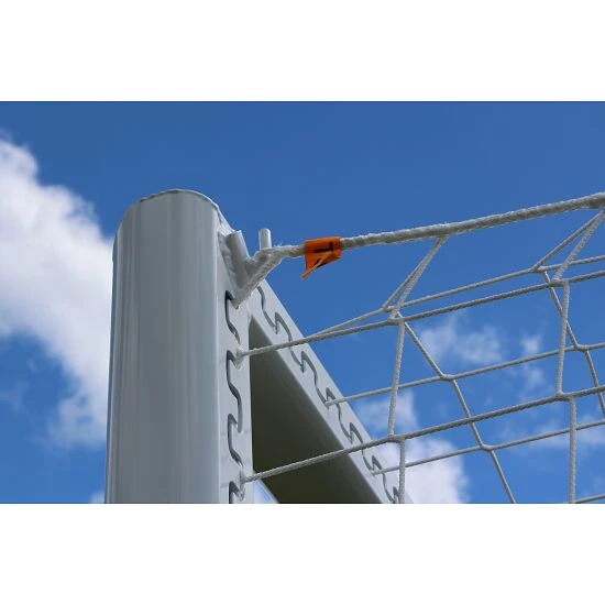 Das Netz (nicht im Lieferumfang enthalten) lässt sich dank der im Torrahmen eingefrästen SimplyFix-Netzbefestigung einfach am Handballtor anbringen. Hierfür wird die Netzrandschnur vollständig in der Profilnut versenkt.