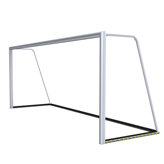 Das Sport-Thieme Großfeldtor ist dank vollverschweißtem AluminiumAluminium ist ein korrosionsbeständiges und pflegeleichtes Leichtmetall, welches für den vielfältigen Einsatz im Innen- und Außenbereich geeignet ist. Aufgrund der hohen Elastizität und des nur geringen Gewichts, ist es eines der am häufigsten verwendeten Gebrauchsmaterialien.-Rahmen ein besonders robustes, transportables und sicheres Trainingstor. Es entspricht den FIFA- und DFB-Vorschriften und ist nach DINDIN-Norm: Ein vom Deutschen Institut für Normung erarbeiteter freiwilliger Standard, in dem materielle und immaterielle Gegenstände vereinheitlicht sind. EN 748 gefertigt. Für einen leichten Transport des Tores sind Griffe angebracht. Durch die vielfache Innenprofilierung ist das GS-geprüfte Trainingstor besonders verwindungssteif. Inklusive Antikipp-Bodenverankerung für optimale Standsicherheit. Lieferung erfolgt ohne Netz