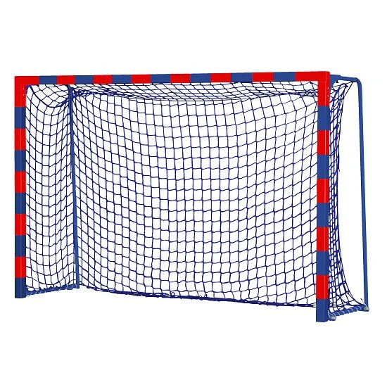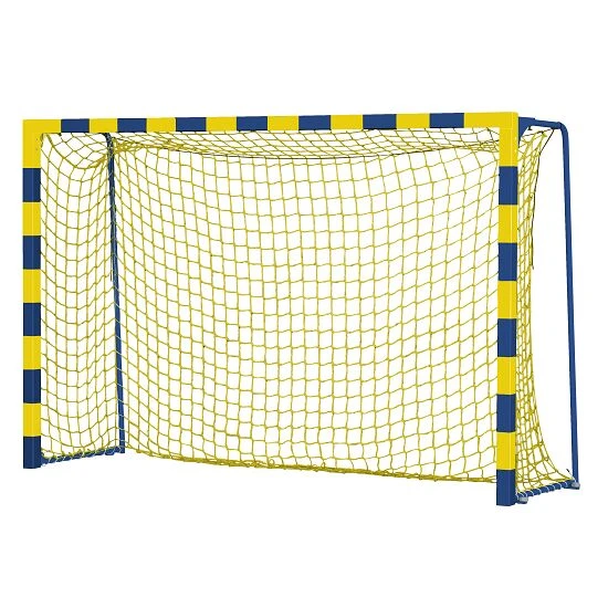 Das Sport-Thieme Handballtor „Colour“ mit fest stehenden Netzbügeln ist in den Farben Gelb-Blau und Rot-Blau als Standard- oder IHF-Zertifizierte-Ausführung erhältlich. Das Tor bietet einen Rahmen aus Alu-Spezialprofil mit den Abmessungen 80×80 mm. Die Netzbügel bestehen aus pulverbeschichtetem Stahlrohr und die Eckverbindung des Rahmens ist durch einen großen, massiven Aluguss-Eckverbinder gesichert. Eine 8-fach sichere Verschraubung je Ecke ist dank der langen Profilzapfen des Aluguss-Eckverbinders sowie dank der geprägten Löcher im Profil möglich.