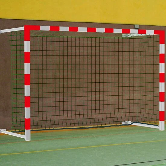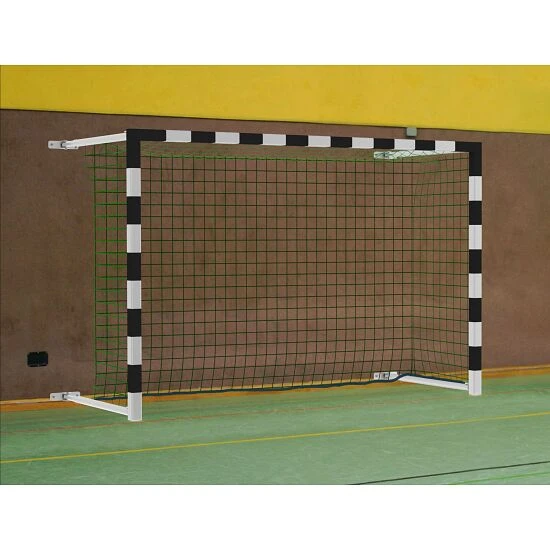 Das Sport-Thieme Hallenhandballtor ist ideal für Schulen und Vereine, wo nicht ausreichend Platz in der Halle oder eine Befestigung im Boden nicht möglich ist. Das Latte-Pfosten-Profil aus hochwertigem AluminiumAluminium ist ein korrosionsbeständiges und pflegeleichtes Leichtmetall, welches für den vielfältigen Einsatz im Innen- und Außenbereich geeignet ist. Aufgrund der hohen Elastizität und des nur geringen Gewichts, ist es eines der am häufigsten verwendeten Gebrauchsmaterialien. ist vollverschweißt und besonders stabil. Seine Auslandung ist von 1,25 – 2,25 m verstellbar, sodass die Tortiefe individuell eingestellt werden kann. Das Sport-Thieme Hallenhandballtor lässt sich schnell und einfach in der richtigen Postion arretieren. Hierzu muss eine kurze Strebe vom Netzbügel zum Torrahmen auf beiden Seiten über Sterngriffe befestigt werden. Die Strebe befindet sich fest am Netzbügel, sodass diese nicht vom Bügel absteht. Nach dem Spiel oder Training einfach die Strebe lösen und das Tor einfach zur Seite schwenken.