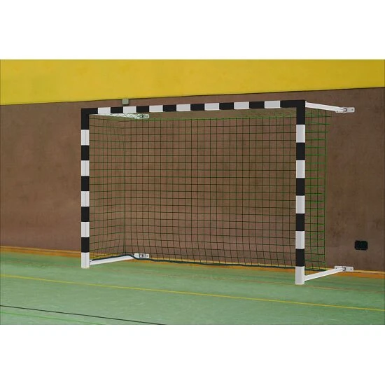 Das Sport-Thieme Hallenhandballtor ist ideal für Schulen und Vereine, wo nicht ausreichend Platz in der Halle oder eine Befestigung im Boden nicht möglich ist. Das Latte-Pfosten-Profil aus hochwertigem AluminiumAluminium ist ein korrosionsbeständiges und pflegeleichtes Leichtmetall, welches für den vielfältigen Einsatz im Innen- und Außenbereich geeignet ist. Aufgrund der hohen Elastizität und des nur geringen Gewichts, ist es eines der am häufigsten verwendeten Gebrauchsmaterialien. ist vollverschweißt und besonders stabil. Seine Ausladung ist von 1,25–2,25 m verstellbar, sodass die Tortiefe individuell eingestellt werden kann. Das Sport-Thieme Hallenhandballtor lässt sich schnell und einfach in der richtigen Postion arretieren. Hierzu muss eine kurze Strebe vom Netzbügel zum Torrahmen auf beiden Seiten über Sterngriffe befestigt werden. Die Strebe befindet sich fest am Netzbügel, sodass diese nicht vom Bügel absteht. Nach dem Spiel oder Training einfach die Strebe lösen und das Tor einfach zur Seite schwenken.