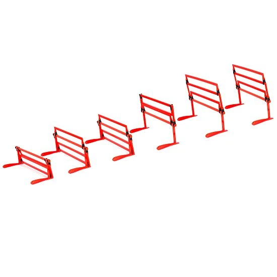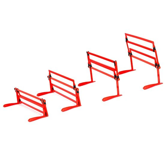Das Sport-Thieme Hürden-Set „Mini“ funktioniert nach einem Klapp-Prinzip: An der Hürde sind rechteckige Segmente angebracht, die Sie ausklappen, um die Hürde höher zu stellen oder einklappen, um die Hürde niedriger einzustellen. Insgesamt sind 4 Höheneinstellungen möglich – ca. 20, 25, 33 und 40 cm. Zum Transport falten Sie die Standfüße der Hürde nach innen und die Trainingshürde auf die niedrigste Höhe. So sparen Sie Platz. Lieferbar einzeln oder als 6er-Set