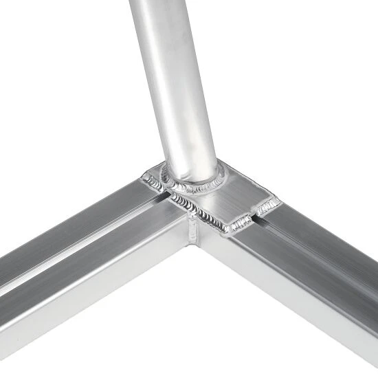 Das Sport-Thieme Jugendfußballtor 5×2 m ist im Bereich Latte/Pfosten mit einem Gussformteil-Eckverbinder verstärkt, der vor dem Schweißen eingesetzt wird.