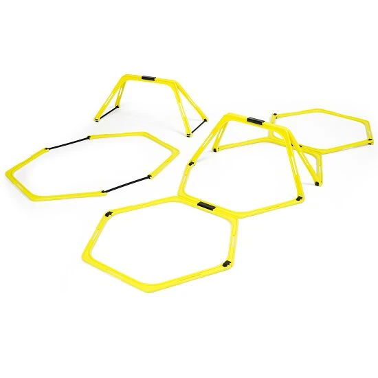 Die Sport-Thieme Koordinationsleiter Agility „Multifunktional“ ist für Sie die erste Wahl, wenn Sie eine vielseitige Trainingshilfe für das Koordinations- und Schnelligkeitstraining suchen. Wenn Sie die 6 sechseckigen Elemente mit den Verbindern zusammenstecken, erhalten Sie eine Koordinationsleiter von 3,6 m Länge. Der große Vorteil der Agility Leiter liegt in ihrer Kombinierbarkeit: Wenn Sie Hürden benötigen, können Sie die Ringelemente mit den 12 Verbindungen zu 6 Übungshürden (H: 23 cm) falten. Sie können die Hürdenelemente aber auch mit den Verbindungen in die Leiter einbauen. Dadurch schaffen Sie die Voraussetzung für ein anspruchsvolles Schnelligkeits-, Koordinations- und Sprungtraining. Nach Gebrauch lassen sich die Ringelemente einfach mittig zusammenfalten und platzsparend in der praktischen Transporttasche verstauen.