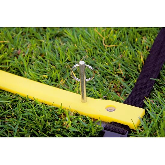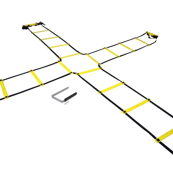 Die Sport-Thieme Koordinationsleiter „Agility“ ist in 2 Längen und 3 Ausführungen erhältlich und besteht aus hochwertigem Gewebe. Die Sprossen sind aus flexiblem und bruchsicherem Kunststoff gefertigt und im Abstand variabel einstellbar. Die Koordinationsleiter ist für drinnen und draußen geeignet. Für die Hallennutzung sind Saugnäpfe an der Unterseite befestigt, um das Rutschen auf glatten Flächen zu verhindern. Für den Outdoor-Bereich sind im Lieferumfang Erdnägel enthalten, sodass eine Fixierung auf dem Sportplatz ebenfalls erfolgen kann. Die Vierfach-Leiter besteht aus 4 einzelnen Elementen á 2 Meter, welche zusammengeklippt werden können. Alle Leitern werden mit einer Transporttasche geliefert.