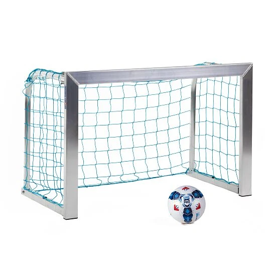 Dieses Mini-Trainingstor überzeugt auf ganzer Linie: Es ist flexibel einsetzbar, robust, lässt sich leicht umpositionieren und platzsparend verstauen. Für die hohe Stabilität und eine lange Nutzungsdauer sorgt die hochwertige Ausführung aus AluminiumAluminium ist ein korrosionsbeständiges und pflegeleichtes Leichtmetall, welches für den vielfältigen Einsatz im Innen- und Außenbereich geeignet ist. Aufgrund der hohen Elastizität und des nur geringen Gewichts, ist es eines der am häufigsten verwendeten Gebrauchsmaterialien.-Profil – Latte und Pfosten sind in einem Stück verschweißt, um härteste Schüsse ohne Beschädigung zu überstehen. Die arretierbaren Scharniere an den stabilen Netzbügeln sorgen für geringen Platzbedarf bei der Aufbewahrung und verleihen dem Sport-Thieme Mini-Fußballtor seine Flexibilität. So lässt sich das Mini-Trainingstor mit angeklappten Netzbügeln problemlos über den Platz tragen und neu positionieren.