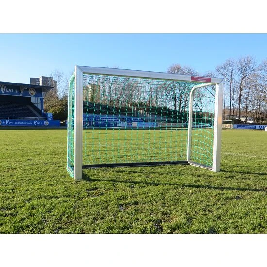 Das Mini-Tor, vollverschweißt mit PlayersProtect ist, dank vollverschweißtem AluminiumAluminium ist ein korrosionsbeständiges und pflegeleichtes Leichtmetall, welches für den vielfältigen Einsatz im Innen- und Außenbereich geeignet ist. Aufgrund der hohen Elastizität und des nur geringen Gewichts, ist es eines der am häufigsten verwendeten Gebrauchsmaterialien.-Rahmen, ein besonders robustes Mini-Trainingstor. Es ist GS-geprüft und in den Größen 120×80 cm, 180×120 cm und 240×160 cm erhältlich. Das Tor wird inklusive Netz (Grün) und Netzhaltern geliefert, welche UV-beständig sind. Der Aufprallschutz (PlayersProtect) besteht aus einem Gummiprofil und ist UV- und witterungsbeständig.