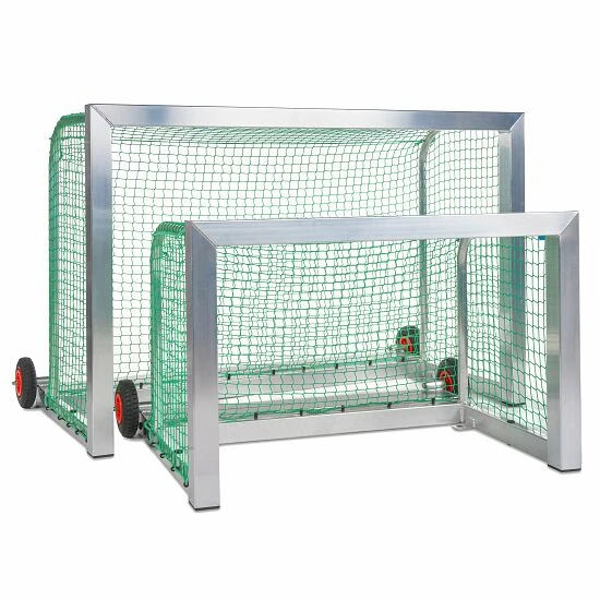 Das Sport-Thieme Trainingstor vereint eine hohe Produktsicherheit mit bester Haltbarkeit und einfacher Handhabung. Ob im Vereinstraining oder für den Einsatz mit Kindern – das selbstsichernde Tor ist hierfür bestens geeignet. Das vollverschweißte Mini-Tor ist aus AluminiumAluminium ist ein korrosionsbeständiges und pflegeleichtes Leichtmetall, welches für den vielfältigen Einsatz im Innen- und Außenbereich geeignet ist. Aufgrund der hohen Elastizität und des nur geringen Gewichts, ist es eines der am häufigsten verwendeten Gebrauchsmaterialien. gefertigt. Hierfür werden die bewährten Spezialprofile 80×80 mm für den Torrahmen und 80×40 mm für die Holme des Bodenrahmens verwendet. Das Bodenrohr wird ebenfalls aus den Spezialprofilen 80×80 mm, sowie aus abgerundeten, verletzungshemmenden Profilen 90×90 mm gefertigt. Durch das Einfüllen von Quarzsand in das Bodenrohr wird ein sehr hohes Gegengewicht erreicht, welches ein Umkippen des Sport-Thieme Trainingstors verhindert.