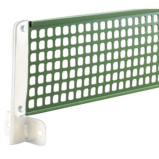 Das Tischtennisnetz aus massivem Metall von Sport-Thieme ist äußerst wetterfest und verfügt über eine sehr robuste Bauweise. So eignet sich das Netz optimal für die Befestigung an Betontischen. Das gelochte Stahlnetz ist verzinkt und zusätzlich in Mattgrün lackiert. Speziell verstärkte Netzkanten zeichnen die TT-Garnitur aus. Der Auf- und Abbau erfolgt schnell und einfach. Das passende Befestigungsmaterial ist im Lieferumfang enthalten.