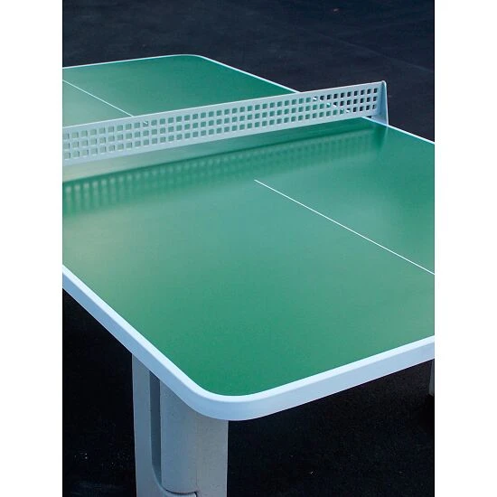Die Tischtennisplatte „Champion“ von Sport-Thieme ist der perfekte Outdoor-Tisch für Schulhöfe, Parks und Freizeiteinrichtungen. Durch die massive Bauweise aus Polymer-Beton überzeugt der Tischtennistisch mit einer hohen Standfestigkeit und Langlebigkeit. Zusätzlich ist die Platte besonders witterungsbeständig gegen Frost und UV-Strahlen. Die blendfreie Oberfläche garantiert ein Spiel bei jedem Wetter. So eignet sich die Platte ideal für einen ganzjährigen Einsatz. Dank abgerundeter Kanten mit einem sehr großen Radius sorgt der robuste Tischtennis-Tisch für mehr Sicherheit beim Rundlauf-Spiel sowie für mehr Sicherheit von Rollstuhlfahrern. Die Lieferung der Sport-Thieme Tischtennisplatte „Champion“ erfolgt inklusive einem Alu-Netz.