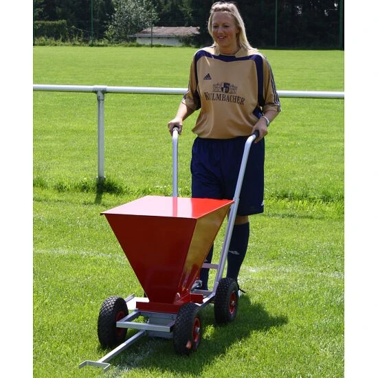 Im Trocken-Markierwagen „Soccer“ können durch Verstellen des Rüttelsiebs von grob bis fein, Streumaterialien wie Kreidepulver, Kalk oder Gips eingesetzt werden. Gleichzeitig dient das Rüttelsieb als Mengendosierung. Die Markierungslinien können dick oder dünn gestreut werden, dadurch lassen sich Kosten einsparen.