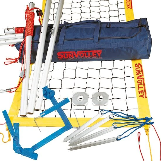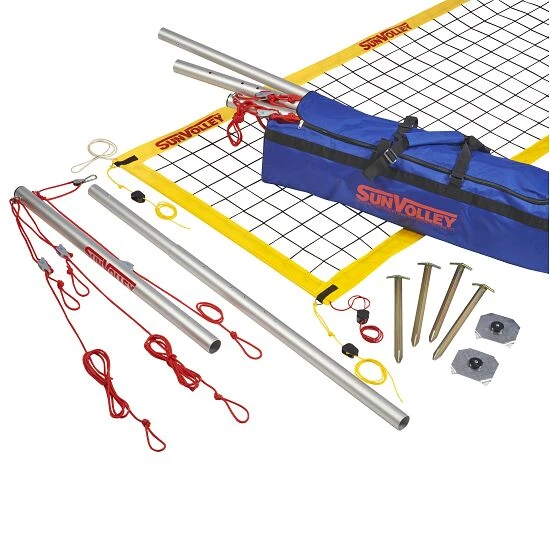 Die transportablen und wetterfesten Outdoor-Volleyballsysteme bestechen durch viele Details: Das einzigartige Spannsystem garantiert eine optimale Netzspannung. Robuste Metallheringe sorgen für eine stabilen Befestigung und die Stabile Alu-Bodenplatten verhindern das Einsinken und Wegrutschen. Dank der zerlegbaren Aluständer ist die Beachvolleyballanlage mit der Normgröße 9,50×1 m oder der Größe 8,50×1 m, in jedem Kofferraum spielend leicht zu verstauen. Alle Systeme sind in der Grundausstattung für das Spiel auf Rasen geeignet und durch das SunVolley-Sandkit auch auf Sand verwendbar.