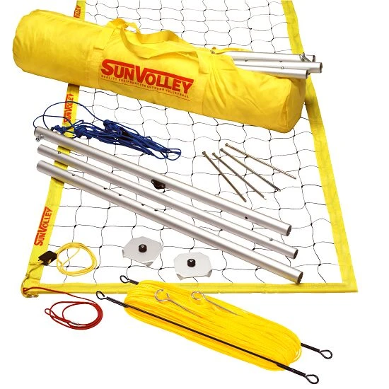 Die transportablen und wetterfesten Outdoor-Volleyballsysteme bestechen durch viele Details: Das einzigartige Spannsystem garantiert eine optimale Netzspannung. Robuste Metallheringe sorgen für eine stabilen Befestigung und die Stabile Alu-Bodenplatten verhindern das Einsinken und Wegrutschen. Dank der zerlegbaren Aluständer ist die Beachvolleyballanlage mit der Normgröße 9,50×1 m oder der Größe 8,50×1 m, in jedem Kofferraum spielend leicht zu verstauen. Alle Systeme sind in der Grundausstattung für das Spiel auf Rasen geeignet und durch das SunVolley-Sandkit auch auf Sand verwendbar.